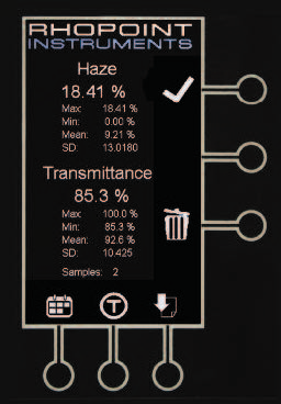 測試結(jié)束時,在屏幕上顯示霧度和透射率的百分比。